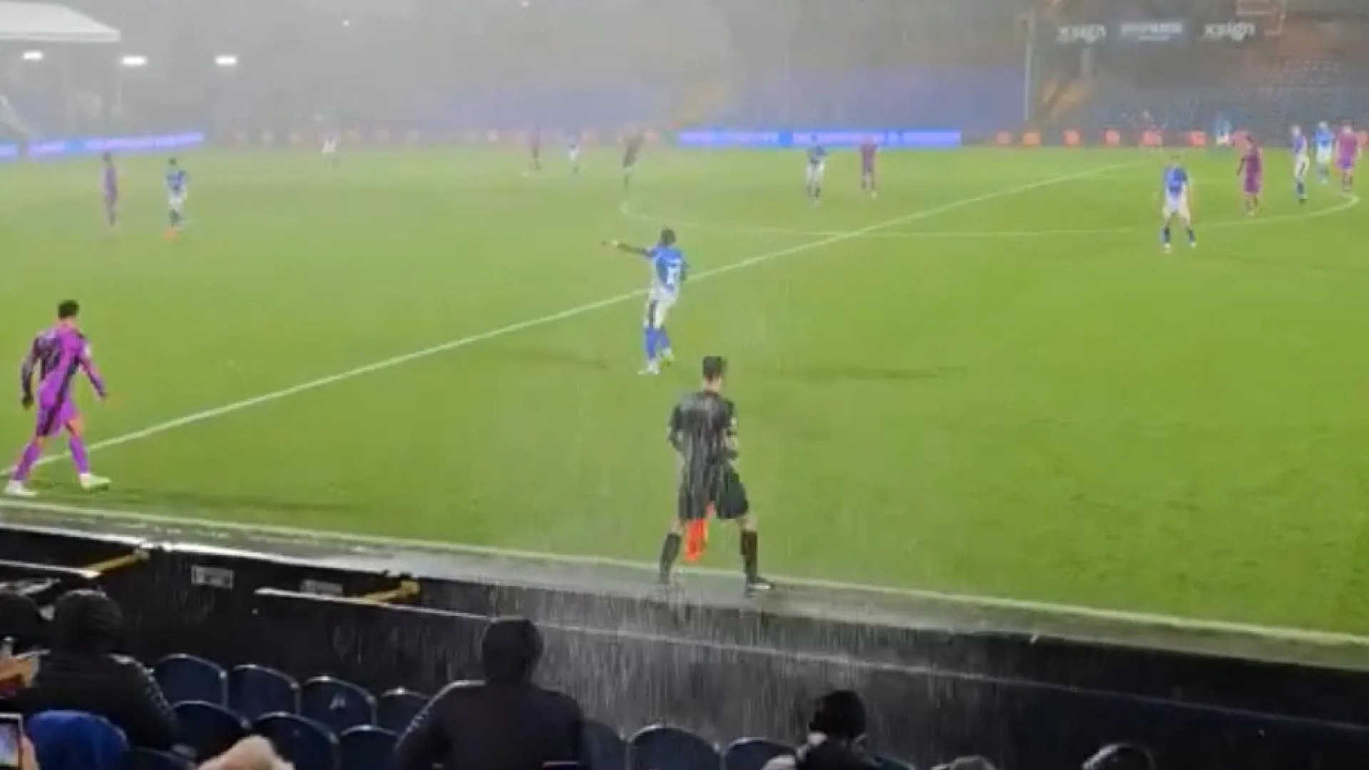 Quem acabou por sofrer com esta infiltração, e antes mesmo da partida ser interrompida, foi o assistente. O árbitro foi obrigado a passar, muitas vezes,, por baixo de uma torrente de água. Sempre que isso acontecia, os adeptos riam-se.