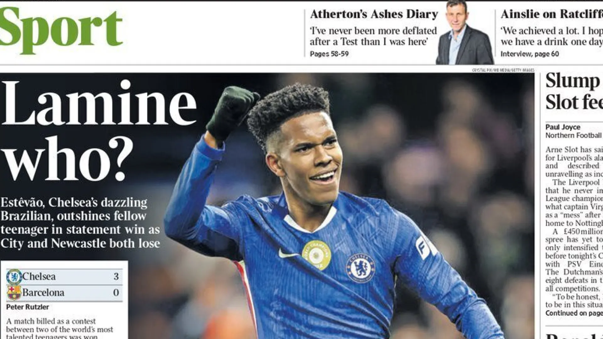 O jovem brasileiro Estêvão foi a grande figura do encontro e os jornais ingleses não se inibem de provocar Lamine Yamal, afirmando que o brasileiro é melhor do que o espanhol.