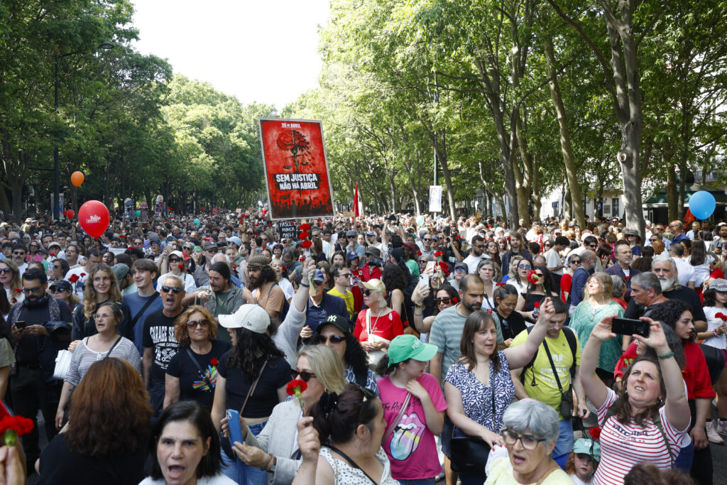 Em declarações aos jornalistas durante a tradicional descida da Avenida da Liberdade, em Lisboa, para celebrar a Revolução dos Cravos, Rui Tavares afirmou que Ventura, na sessão solene comemorativa do 25 de Abril, no parlamento, repetiu “quatro ou cinco vezes uma frase de Hitler, como se não fosse nada”.